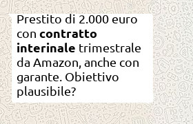 Prestito di 2.000 euro con contratto interinale trimestrale da Amazon, anche con garante. Obiettivo plausibile?