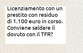 Licenziamento con un prestito con residuo di 1.100 euro in corso. Conviene saldare il dovuto con il TFR?